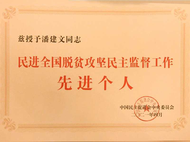 近日,河南省民进会员、乾坤环保董事长潘建文被民进授予“民进全国脱贫攻坚民主监督工作个人”荣誉称号。