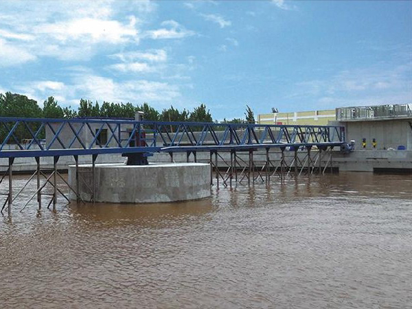 周边传动刮(吸)泥机,是城市水厂、污水处理厂及工业废水处理厂常用的沉淀池设备。周边传动刮(吸)泥机主要适用于辐流式沉淀池、竖流式沉淀池等。沉淀池采用中间进水、排泥,周边排水,或者周边进水、排水,中间排泥的形式,保证水流均匀。